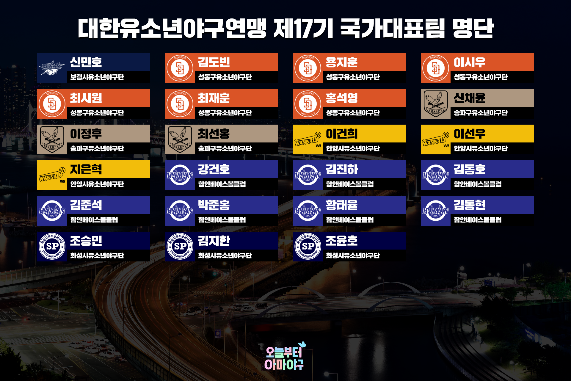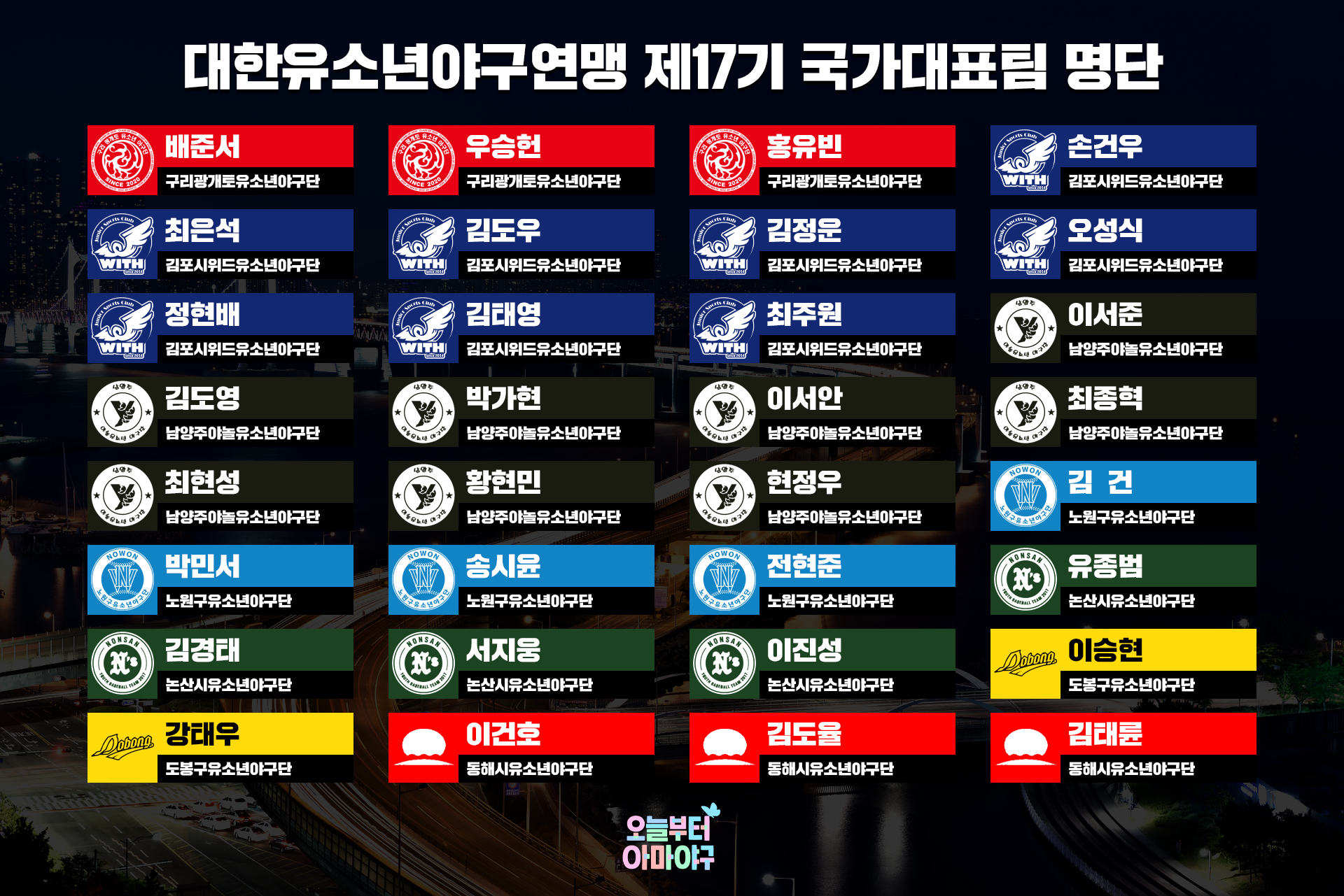 제17기 대한유소년야구연맹 국가대표팀 명단 <일본 오사카 국제교류전>