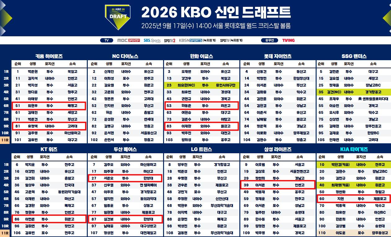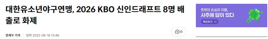 대한유소년야구연맹, 2025 KBO 프로야구 선수 9명 배출