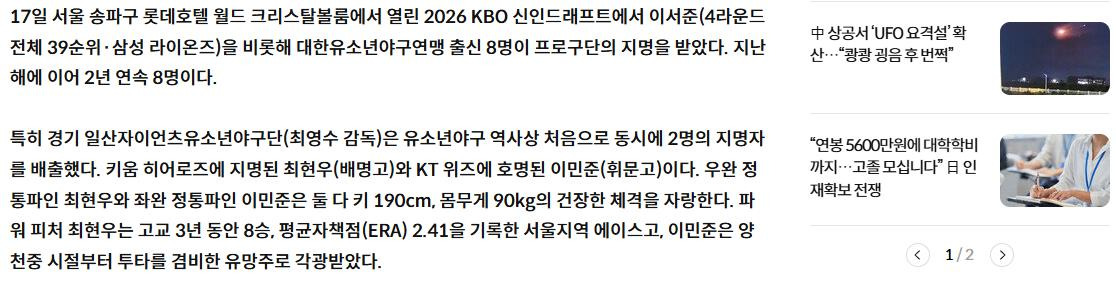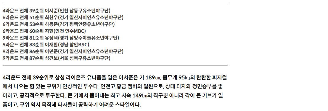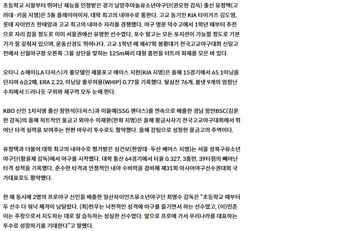 ◇ 9라운드 <전체 86번> 이민준 (경기 일산자이언츠유소년야구단)