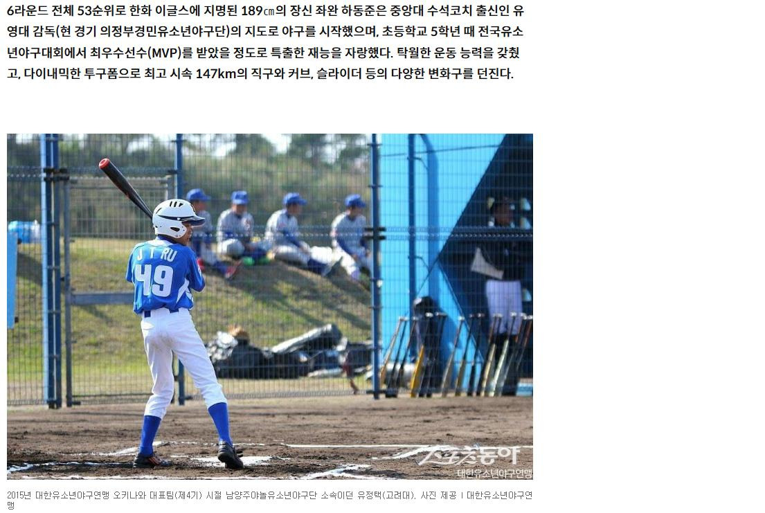 ◇ 6라운드 <전체 53번> 하동준 (경기 평택안중유소년야구단)