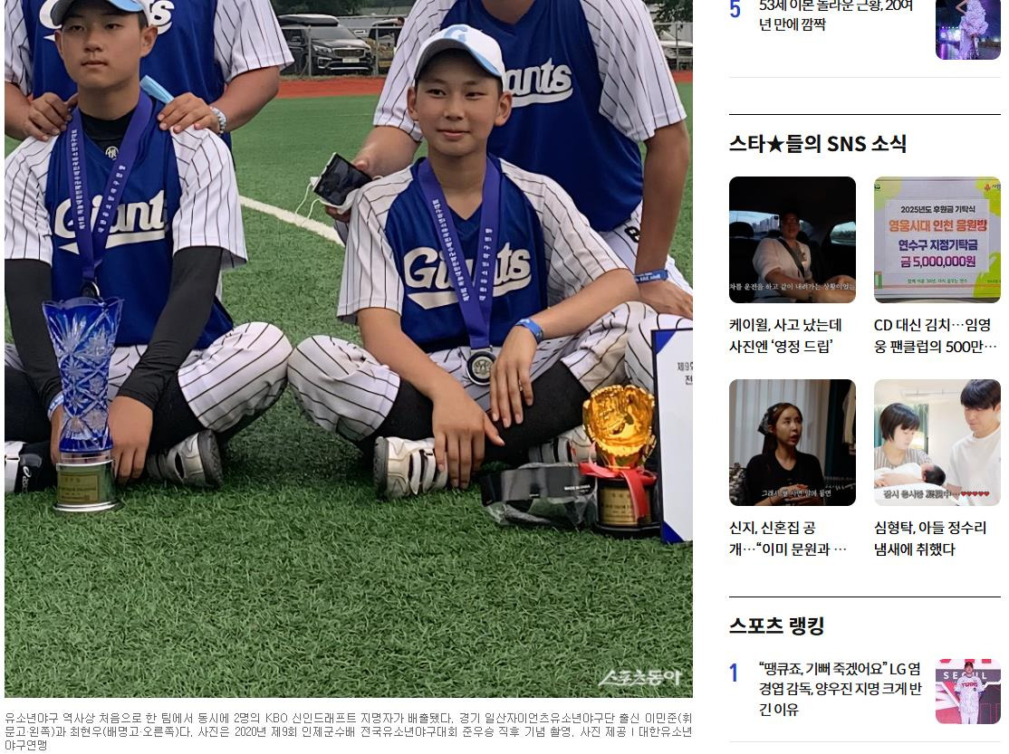 경기 일산자이언츠유소년야구단 - 유소년야구 역사상 처음으로 한 팀 동시 2명 배출