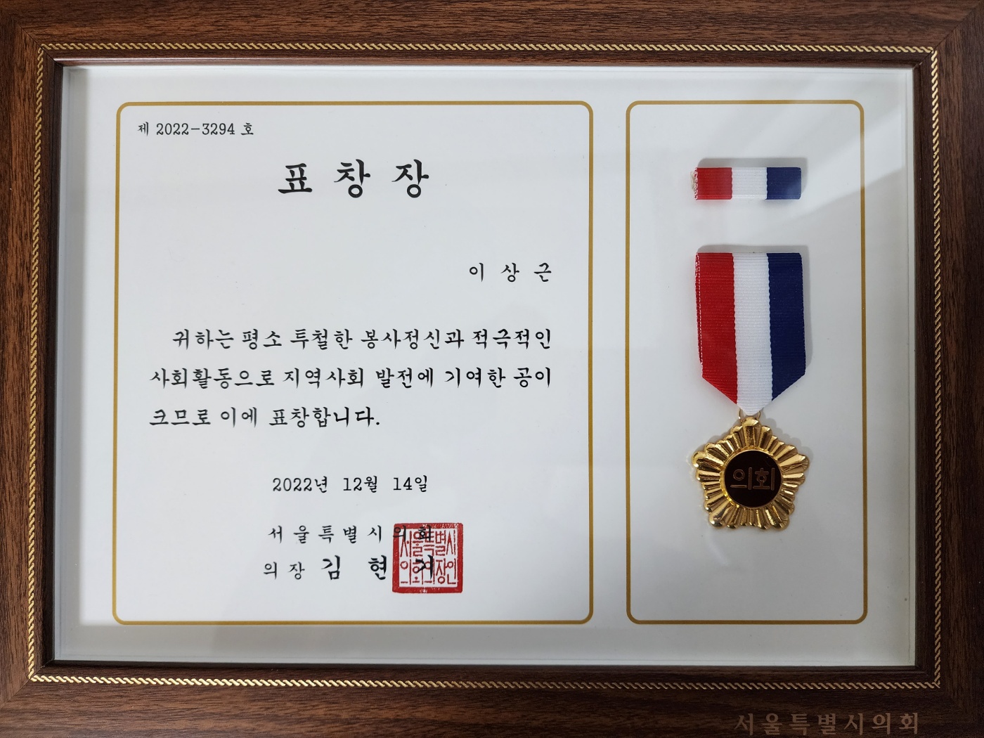 12 대한유소년야구연맹, 유소년야구 발전 공로로 서울시의회 의장 표창장 수상
