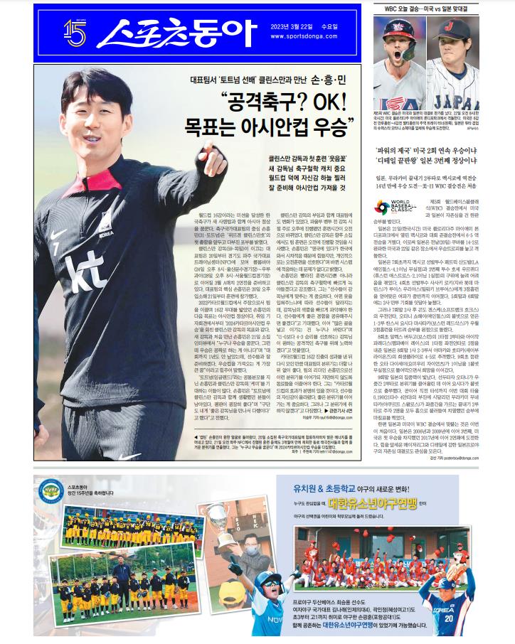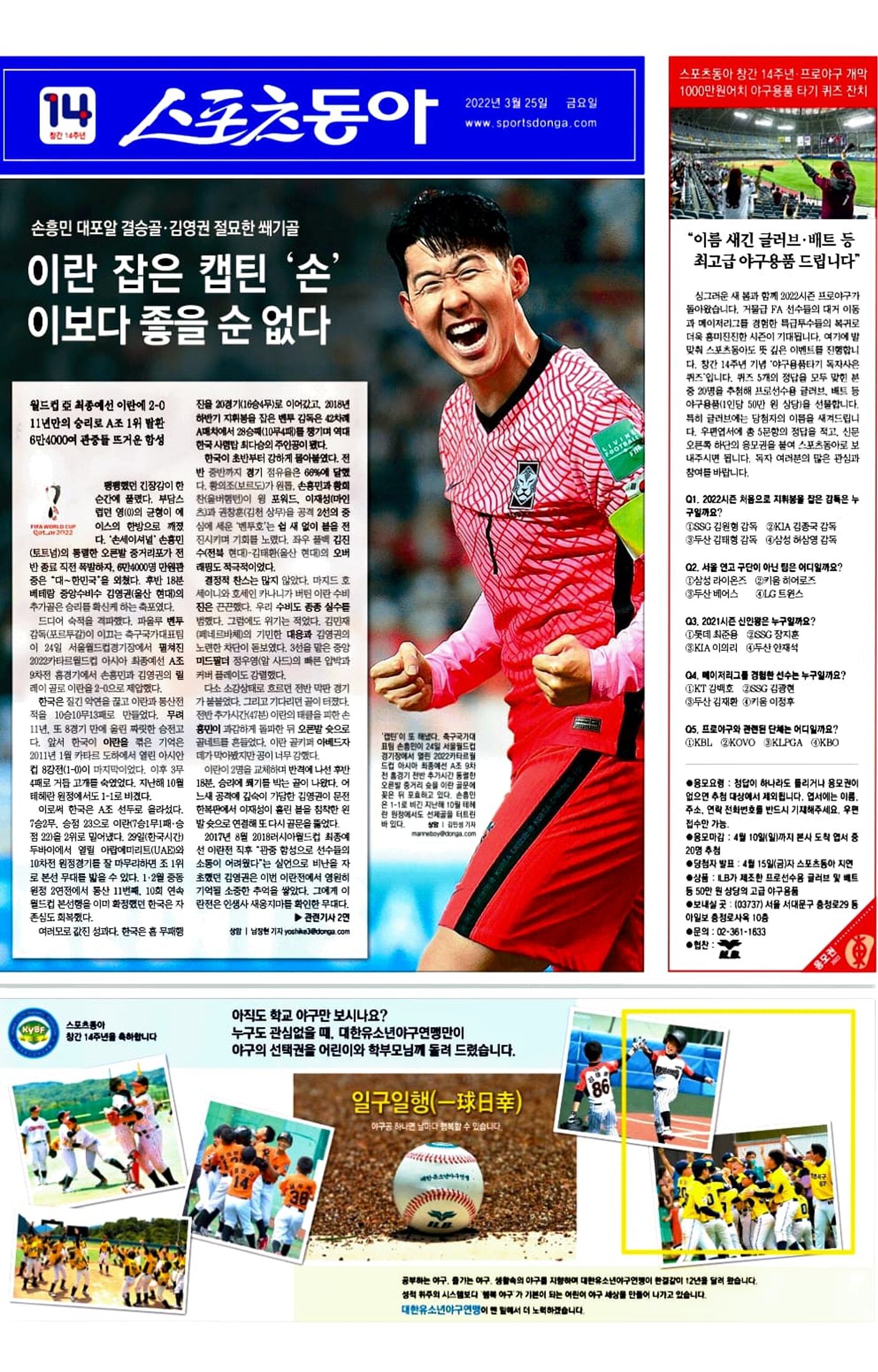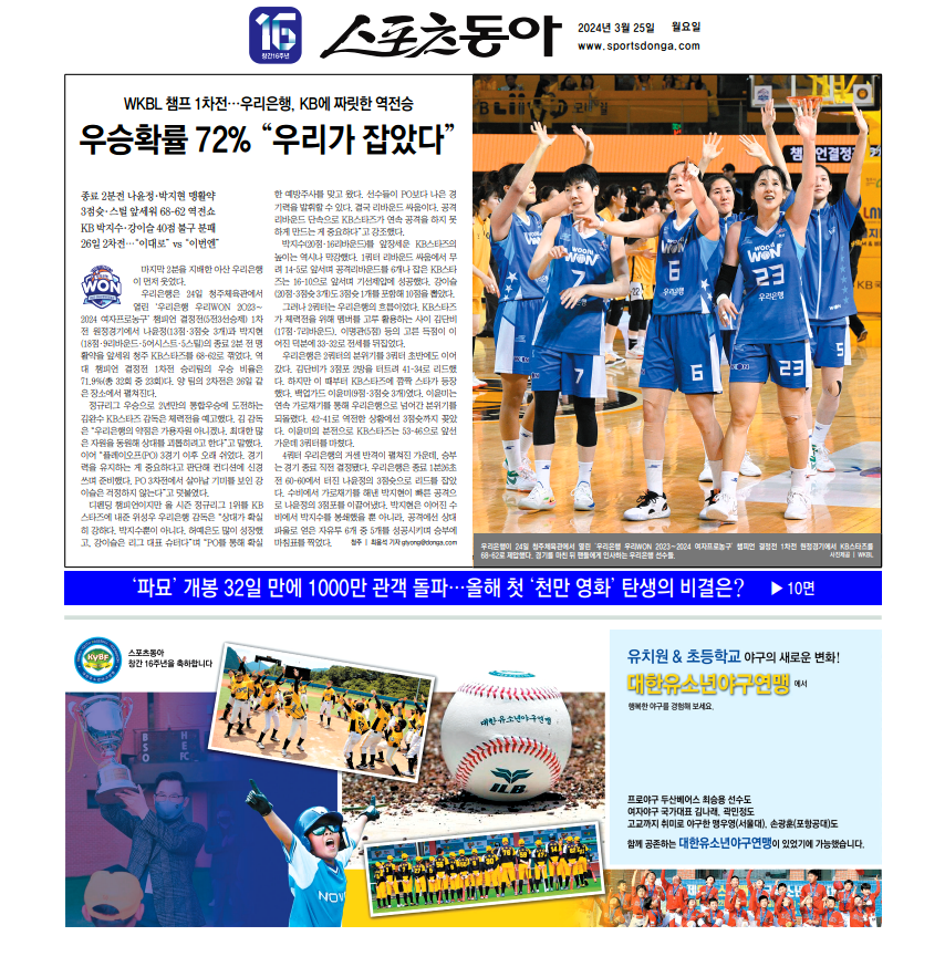 03 스포츠동아 지면 광고 게재 (연맹 이미지 광고, 1면 톱, 3/22자)