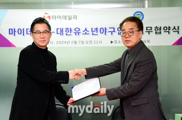 대한유소년야구연맹 이상근 회장(左)과 마이데일리 이석희 대표(右)