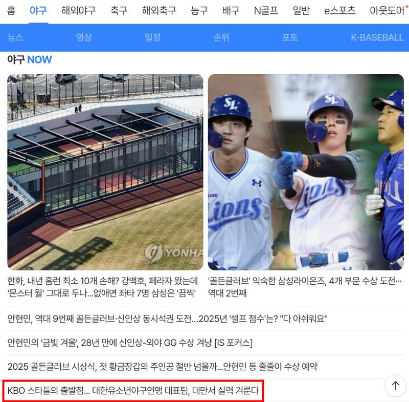 대한유소년야구연맹 대표팀, 대만 국제교류전 참가 [2025/12/11~16]