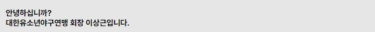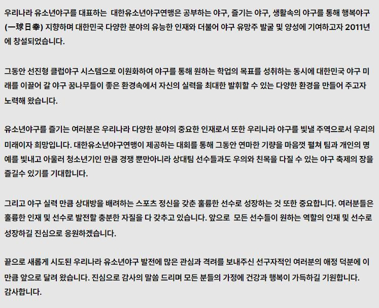 회장 인사말 작성자대한유소년야구연맹|작성시간25.12.08|조회수107 목록 댓글 0 글자크기 작게가 글자크기 크게가 다음검색 현재 게시글 추가 기능 열기 북마크 공유하기 신고 센터로 신고 댓글 댓글 0 댓글쓰기 댓글 리스트