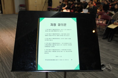 용산구지회는 이에 응답해 지난달 29일 구청에서 자정 결의 대회를 열고 관련 결의문을 채택했다.