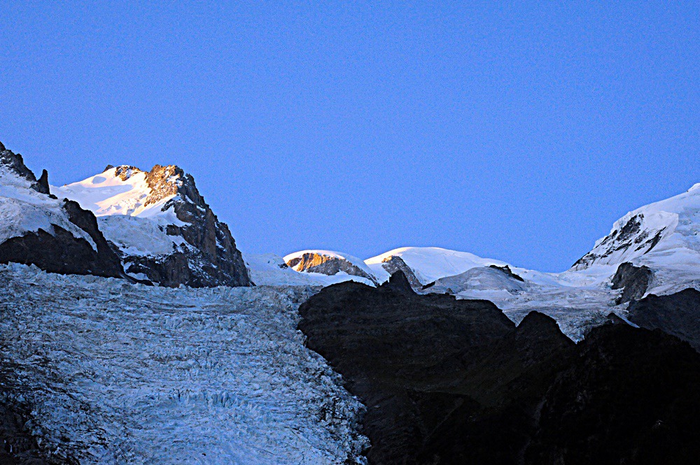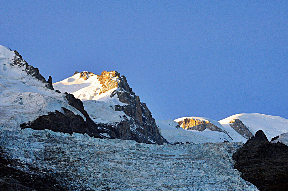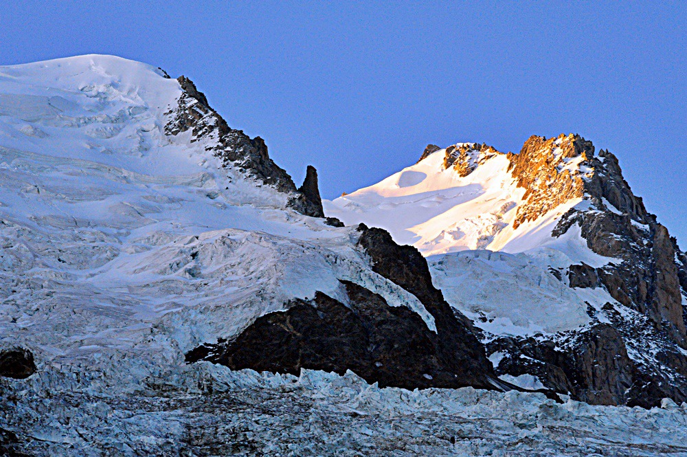 3일만에 몽블랑 정상은 구름 한점없는 깔끔한 모습으로 아침을 맞이하고있다