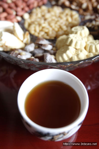 여기에 배, 생강, 울금, 계피, 꿀을 넣어 장기간 후숙시켜 마신다. 울금이 왕실에 진상품으로