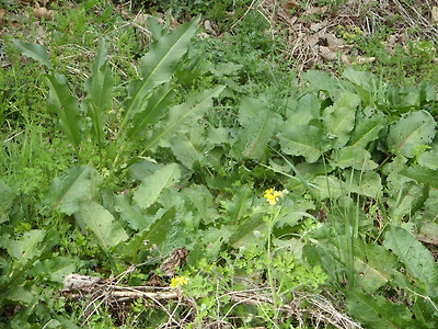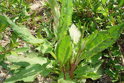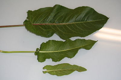 위 개대황 잎 - 중간 소리쟁이 잎 - 아래 수영 잎