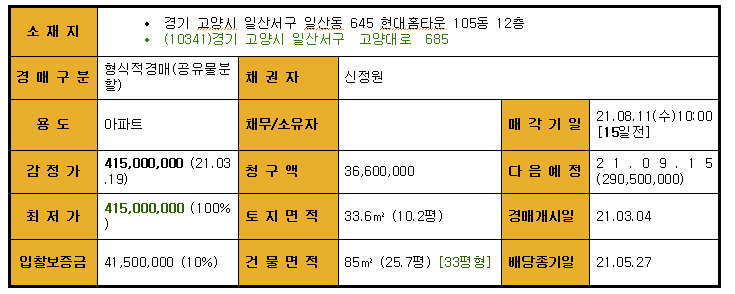 일산동 현대홈타운아파트 경매 사건은
