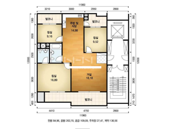 방3, 욕실2, 거실, 주방/식당, 발코니,등