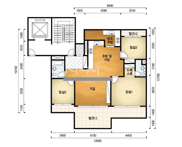 방3, 욕실2, 거실, 주방/식당, 발코니,