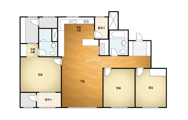 방3, 욕실2, 거실, 주방/식당, 발코니,