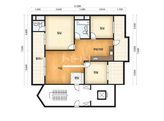 방3, 욕실2, 거실, 주방/식당, 발코니,등