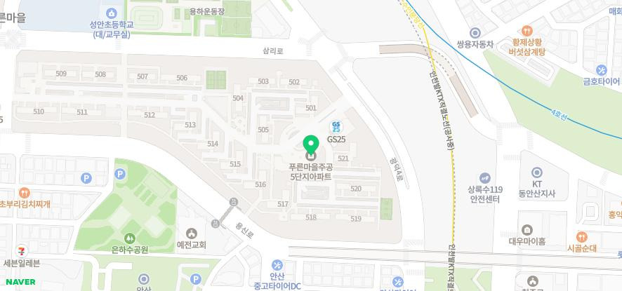 | 교육 | ㆍA&E지혜어린이집(233m) ㆍ성안초등학교(278m) ㆍ자연생태숲유치원(288m) ㆍ눈컴플러스 안산러닝센터(318m) ㆍ시냇가 푸른나무유치원(389m) ㆍ행복한이동어린이집(394m) ㆍ늘푸른유치원(441m) ㆍ새늘푸른어린이집(445m) ㆍ해를담은어린이집(446m) ㆍ마스터피스수학학원(463m) |