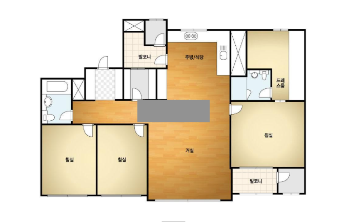 방3, 욕실2, 거실, 주방/식당, 발코니,드레스룸등