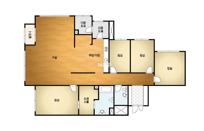 방4, 욕실2, 거실, 주방/식당, 발코니,드레스룸등
