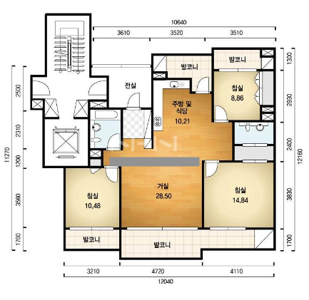 방3, 욕실2, 거실, 주방/식당, 발코니,등