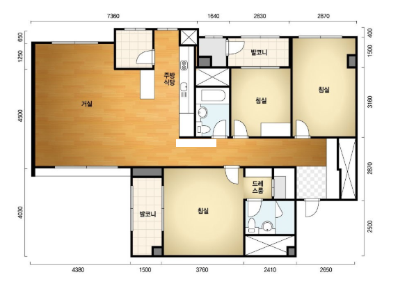 방3, 욕실2, 거실, 주방/식당, 발코니,드레스룸등