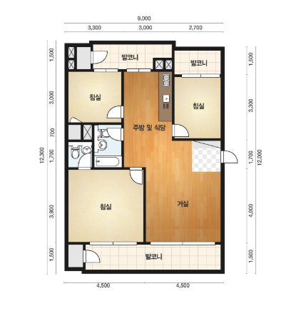 방3, 욕실2, 거실, 주방/식당, 발코니,등