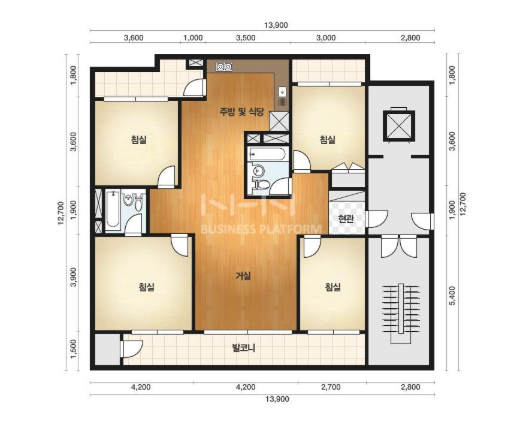 방4, 욕실2, 거실, 주방/식당, 발코니,등