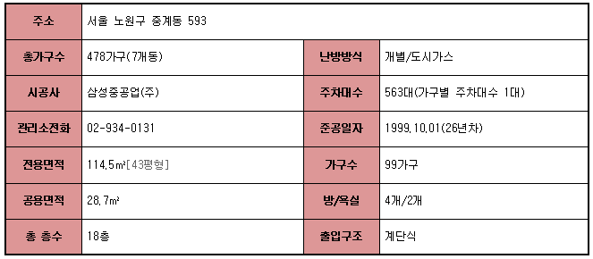 | 교통 | ㆍ지하주차장(110m) ㆍ노원문화예술회관 주차장(297m) ㆍ거주자 우선주차장(323m) |