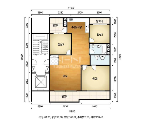 방3, 욕실2, 거실, 주방/식당, 발코니,등