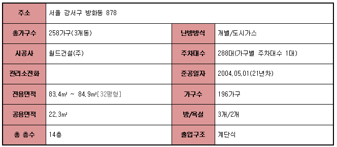 | 역세권 | ㆍ5호선 방화 250m ㆍ5호선 개화산 561m |