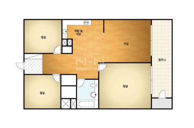 방3, 욕실1, 거실, 주방/식당, 발코니,등