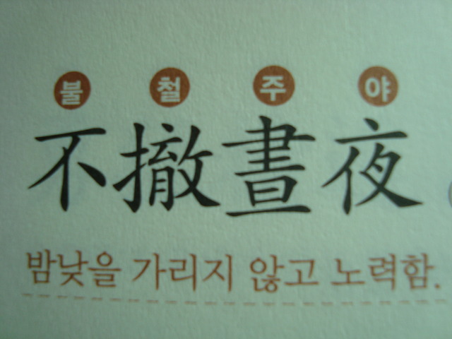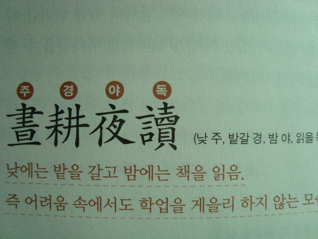 주경야독 작성자무을 토박이|작성시간10.01.02|조회수251 목록 댓글 1 글자크기 작게가 글자크기 크게가 밤에도 낮에도 일을 거두지않고 노력하는 모습을 가리킴니다. 어려운 환경 속에서 공부하는 모습을 나타내는 대표적이 사자성어 입니다. 밤 낮으로 쉬지않고 끊임없이 흐르는 시내라는 뜻입니다. ~무을 토박이~ 다음검색 현재 게시글 추가 기능 열기 북마크 공유하기 신고 센터로 신고 댓글 댓글 1 댓글쓰기 답글쓰기 댓글 리스트 작성자무을 토박이 작성자 본인 여부 작성자 | 작성시간 10.01.03 주야장천 = 시냇물은 결코 쉬는 법이 없습니다....흐르는 냇물처럼 쉬지않고 언제나 늘 같은 의미를 갖습니다. 댓글 전체보기