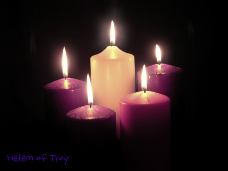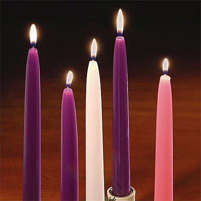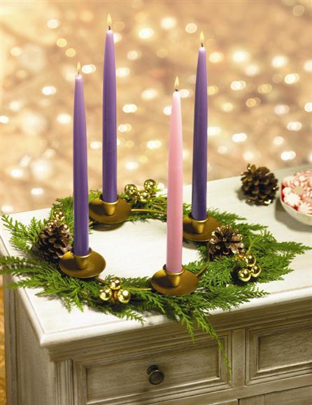 4개의 보라빛과 핑크색의 초는 대림환 둘레에 두고,