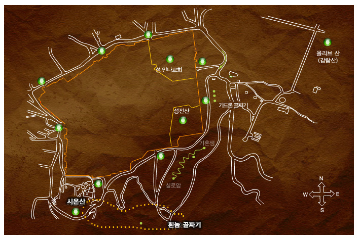 힌놈의 골짜기(Hinnom, 게헨놈, Gehennom) (출처- http://cafe.daum.net/intuba/a91F/) 1) '지옥의 형벌' 이미지 그래서인지 관광객들은 먼발치에서 골짜기의 전체 풍경을 카메라에 담을 뿐 직접 안으로 들어가는 경우는 드물다. 전망대에서 힌놈의 골짜기를 바라보는 사람들에게 ‘왜 직접 들어가보지 않느냐?’고 물으면, 시간이 없다고 하거나 별로 가보고 싶지 않다고 한다. 사람들의 대답 속에 ‘불길하다’ 혹은 ‘기분 나쁘다’와 같은 느낌이 역력하다. 나 역시 힌놈의 골짜기에 대해 쓰려고 했을 때, ‘하고많은 장소들 가운데 하필이면…’ 하고 몇 번의 망설임이 있었다. 쓰레기 소각장이요 시체 매장지인 힌놈의 골짜기는 예루살렘 남서쪽에 위치한 골짜기로, 골짜기를 따라 계속 내려가면 기드론 골짜기와 감람산의 겟세마네 지역과 만난다. 지금은 잔디와 나무를 심어서 경관이 괜찮지만 옛날에는 정말 황량한 곳이었다고 한다. 힌놈의 골짜기는 유다 아하스 왕 시대에 바알의 우상을 만들어놓고 거기에 분향했으며, 또 유다 사람들이 이곳에 암몬 족속의 신 ‘몰렉’을 위한 산당 ‘도벳’을 짓고 거기에서 어린 자녀들을 산 채로 불살라 제물로 바치는 악을 행했다.(대하 28:1~4, 렘 7:31~33, 겔 16:20~21) “유다 왕 아하스(왕하 16:1-5) 1 아하스가 왕위에 오를 때에 나이가 이십 세라 예루살렘에서 십육 년 동안 다스렸으나 그의 조상 다윗과 같지 아니하여 여호와 보시기에 정직하게 행하지 아니하고 2 이스라엘 왕들의 길로 행하여 바알들의 우상을 부어 만들고 3 또 힌놈의 아들 골짜기에서 분향하고 여호와께서 이스라엘 자손 앞에서 쫓아내신 이방 사람들의 가증한 일을 본받아 그의 자녀들을 불사르고 4 또 산당과 작은 산 위와 모든 푸른 나무 아래에서 제사를 드리며 분향하니라.” “여호와께서 말씀하시되 유다 자손이 나의 눈 앞에 악을 행하여 내 이름으로 일컬음을 받는 집에 그들의 가증한 것을 두어 집을 더럽혔으며 31 힌놈의 아들 골짜기에 도벳 사당을 건축하고 그들의 자녀들을 불에 살랐나니 내가 명령하지 아니하였고 내 마음에 생각하지도 아니한 일이니라 32 그러므로 여호와께서 말씀하시니라 날이 이르면 이 곳을 도벳이라 하거나 힌놈의 아들의 골짜기라 말하지 아니하고 죽임의 골짜기라 말하리니 이는 도벳에 자리가 없을 만큼 매장했기 때문이니라.(렘7:30-32)”그 후 요시야 왕이 몰렉에게 드리던 이방 제사를 파하고 골짜기와 도벳 산당 터를 더럽혀(왕하 23:10), 그때부터 이곳은 이방인의 무덤과 쓰레기 소각장으로 쓰여진다. 예루살렘에서 나오는 쓰레기들을 다 모아 큰 불을 피워서 태워 없앴고, 각종 오물을 버렸다. 특히 율법을 어겨서 죽임 당한 사람, 이방인, 반역자, 문둥병 등 부정한 질병으로 죽은 자, 그리고 오갈 데 없이 살다가 이름도 없이 죽은 거지나 유랑자들의 시체를 매장했다. 그런 까닭에 힌놈의 골짜기 주변에서는 쓰레기와 짐승의 사체와 사람의 시체에서 나오는 심한 악취가 진동했다고 전해진다. 그리고 당시 예루살렘 성의 쓰레기들과 오물들은 옛 성문 가운데 분문을 통해서 옮겨 힌놈의 골짜기로 실어 날랐는데, 온갖 더러운 것들과 오물들과 죄인들의 시체와 짐승의 사체가 나가는 문이어서 ‘분(똥)문’이라 이름 지어졌다고 한다. 2) 지옥의 대명사, 게헨놈, 몰렉에게 바친 아이들을 불사른 강렬한 불과 타는 연기와 고통 소리, 그 후 온갖 쓰레기들을 태울 때 그 불이 꺼지지 않고 계속해서 피어오른 것을 보고 유대인들은 ‘지옥’이라는 단어를 이 골짜기의 이름에서 따와 ‘게헨놈’이라고 했다. 그리하여 ‘게헨놈’은 원래 이 골짜기의 이름이지만 지옥이라는 특별한 대명사로 사용된다. 예수님도 마가복음에서 지옥을 이야기하실 때 게헨놈이라는 단어를 직접 사용하셨다. “만일 네 손이 너를 범죄케 하거든 찍어버리라. 불구자로 영생에 들어가는 것이 두 손을 가지고 지옥 꺼지지 않는 불에 들어가는 것보다 나으니라….(막 9:43~49)” 3) 가룟 유다가 목을 맨 곳, 아켈다마, 여기서 한 가지 더 주목할 점은, 힌놈의 골짜기 중심부에 ‘아켈다마’(Akeldama)가 자리하고 있었다는 것이다. 아켈다마는 ‘피밭’이라는 의미의 아람어라는데, 가룟 유다가 예수님을 팔고 마음의 가책을 이기지 못해 스스로 목을 맨 곳으로 성경에 기록되어 있다(마 27:1~10, 행 1:18~19). 지금은 이곳이 옛날과 많이 달라져서 어느 곳이 아켈다마인지 정확히 말할 수는 없지만, 오랜 시간 사람들의 입에서 입으로 전해내려온 ‘피밭’이라 불리는 장소가 힌놈의 골짜기 한쪽에 있고, 그곳 위에 지어진 수도원이 아직까지 자리하고 있다. 예수님의 승천 이후 대략 200~300년을 사람들이 피밭이라 불렀다는 곳, 아켈다마. 가룟 유다의 죽음 이후 제사장들이 그 밭을 사서 예루살렘의 멸망 전까지 외국인과 부정한 자들의 매장지로 사용했기에 이름이 알려진 곳이었다고 한다. 그리고 전해져 내려오는 이야기를 토대로 그 후에 그곳 위에 수도원을 지었다고 한다. 여하튼 가룟 유다가 죽은 곳이 지옥을 의미하는 힌놈의 골짜기 안에 있다는 사실이 주의를 끈다. (글 출처-http://gnmcj.blog.me/193945251, 장주현(이스라엘선