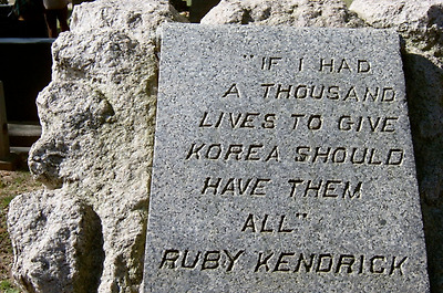 루비 켄드릭 묘비에는 아래와 같이 써있습니다. " If I had a thousand lives to give , Korea should have them all ." - Ruby Kendric "내게 줄 수 있는 천번의 생명이 있다면, 나는 그 천 번의 삶을 한국을 위해 바치겠다" -루비 켄트릭-