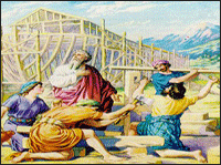 “하나님이 노아에게 이르시되 모든 혈육 있는 자의 강포가 땅에 가득하므로 그 끝날이 내 앞에 이르렀으니 내가 그들을 땅과 함께 멸하리라 너는 잣나무로 너를 위하여 방주를 짓되 그 안에 간들을 막고 역청으로 그 안팎에 칠하라” (창세기 6:13,14).