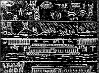 그런데 이 석판에서 특이한 것은 첫번째 그림에서는 태양이 타원형으로(럭비공 처럼) 그려져 있고, 네번째에는 태양이 둥글게 그려져 있다. 노아홍수 전에는 궁창 위의 물층으로 인해 빛의 산란현상 때문에 태양이 굴절되어 보이므로 럭비공처럼 보였던 것이다. 그리고 물이 다 쏟아진 후에는 원래의 모습대로 둥글게 보인 것이다. 분명히 태양의 모습이 다르게 보였기 때문에 그 사실이 후대로까지 전해졌을 것이고, 그것에 기초해서 석판을 만들 때 럭비공처럼 찌그러진 태양의 모습과 둥그런 태양의 모습을 그려놓았던 것임을 짐작해 볼 수 있다.