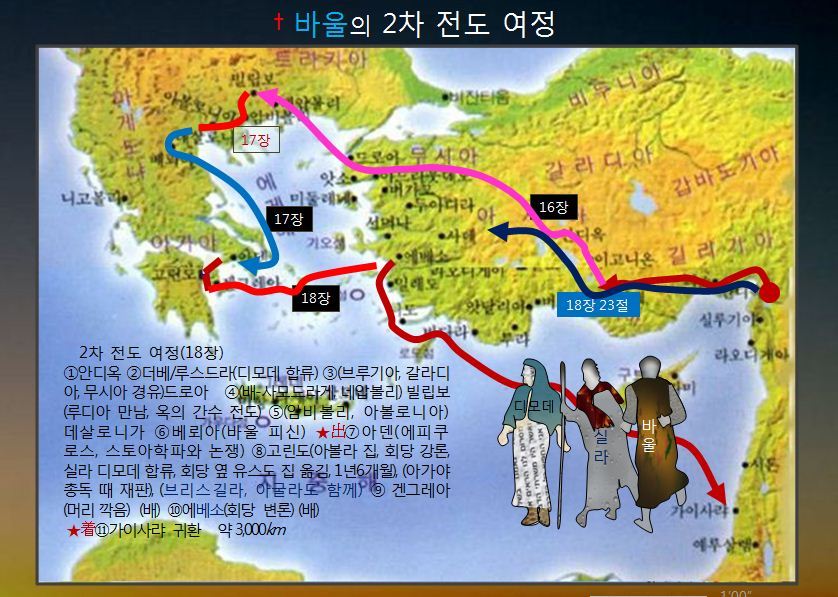 ▶아덴, 아레오바고에서의 설교 (행17:16). ▶고린도에서 환상을 봄, 교회 설립(행18:1-18)