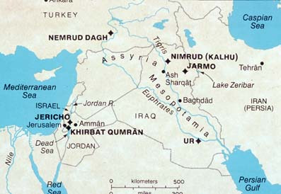 위 지도는 수메르 지역의 고대 도시 중 니므롯을 나타냅니다.