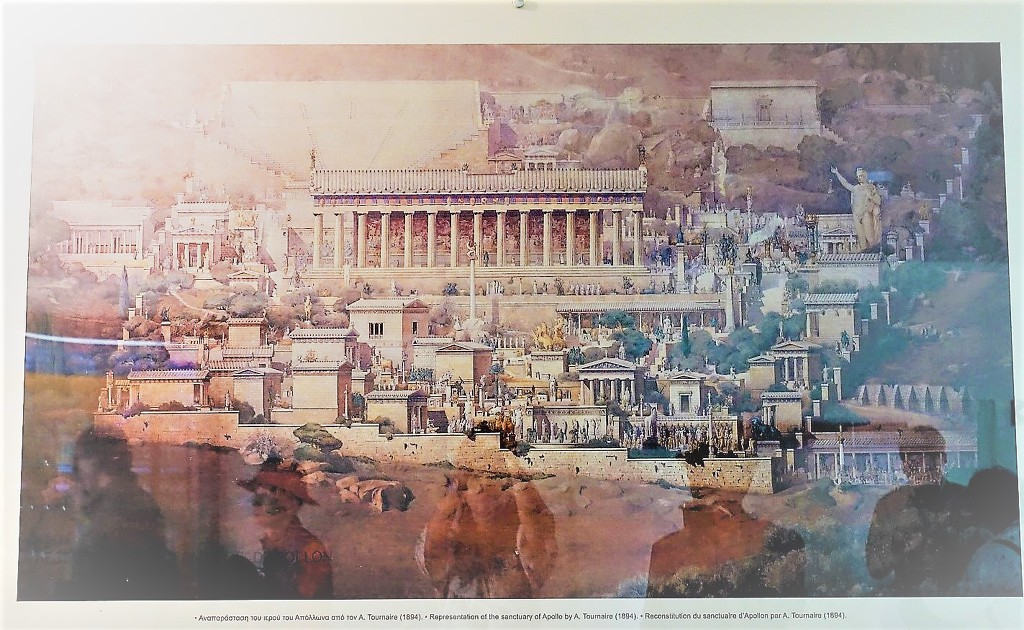 기원전 6세기경 델피의 전성기라고 불리던 시기의 델포이 성역 복원도.