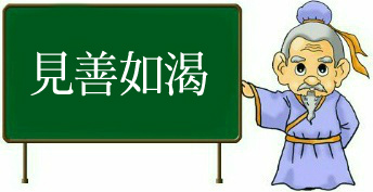 子曰 見善如不及 見不善如探湯. 자왈 견선여부급 견부선여탐탕. 공자 가로되, 착한 것을 보거든 미치지 못하는 것과 같이 하고 악한 것을 보거든 끓는 물을 만지는 것과 같이 하라.