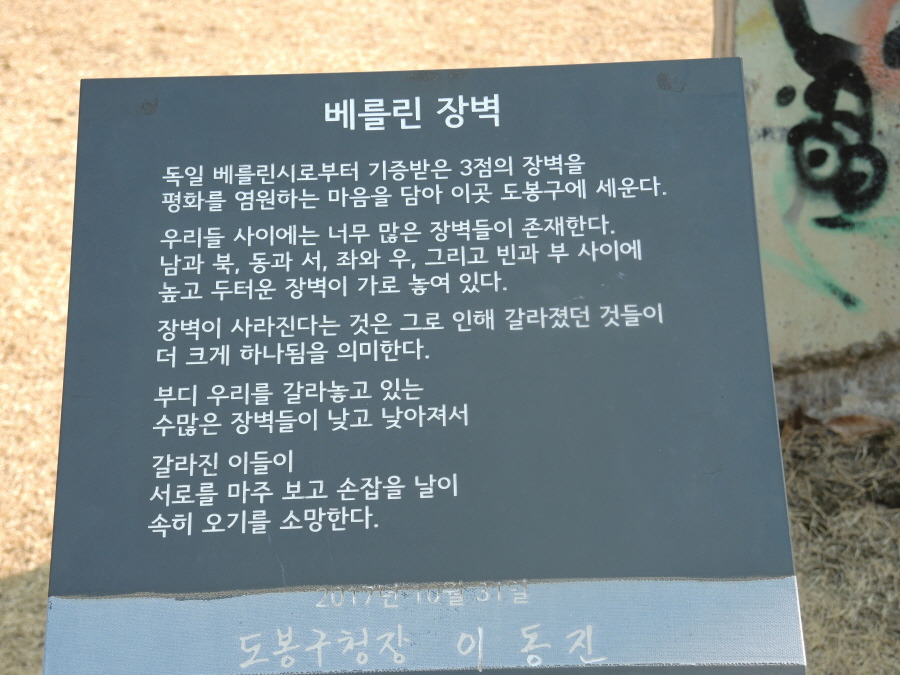 독일 베를린시로부터 기증받은 3점의 장벽을 평화를