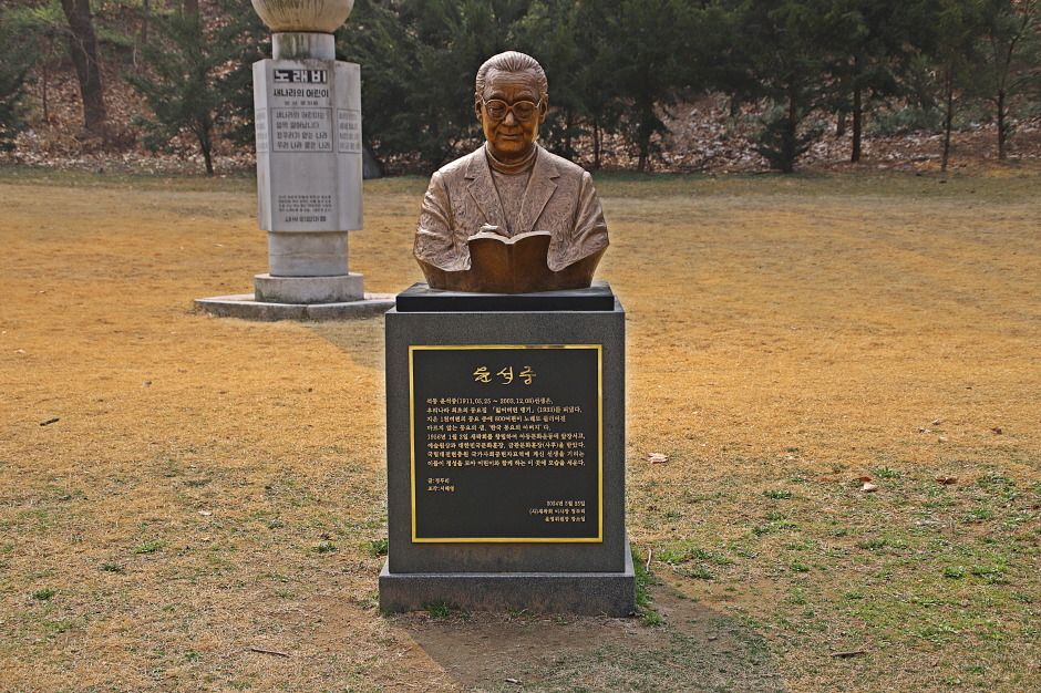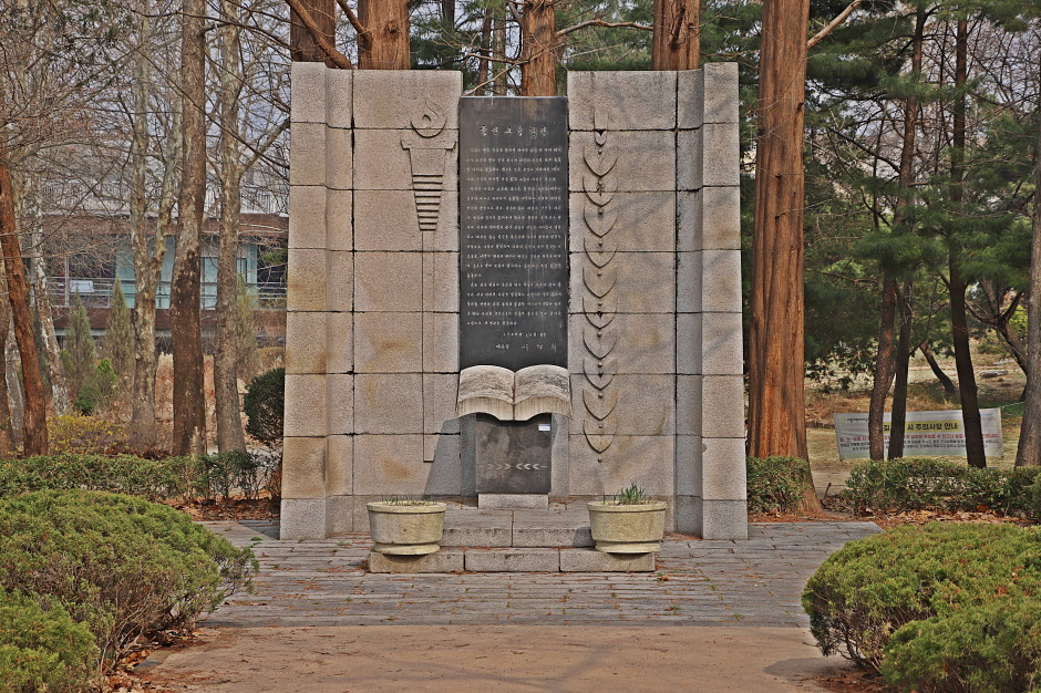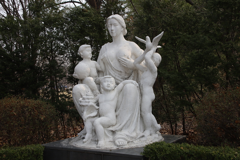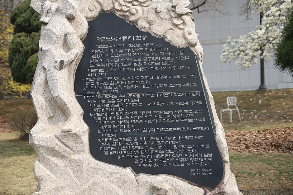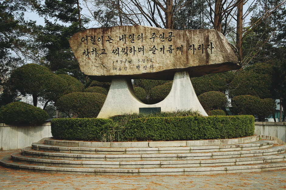 어린이는 내일의 주인공 대통령 박정희. 모자상. 국민교육헌장비.