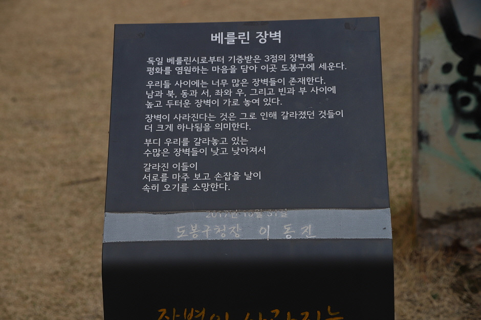 독일 베를린시로부터 기증받은 3점의 장벽을 평화를