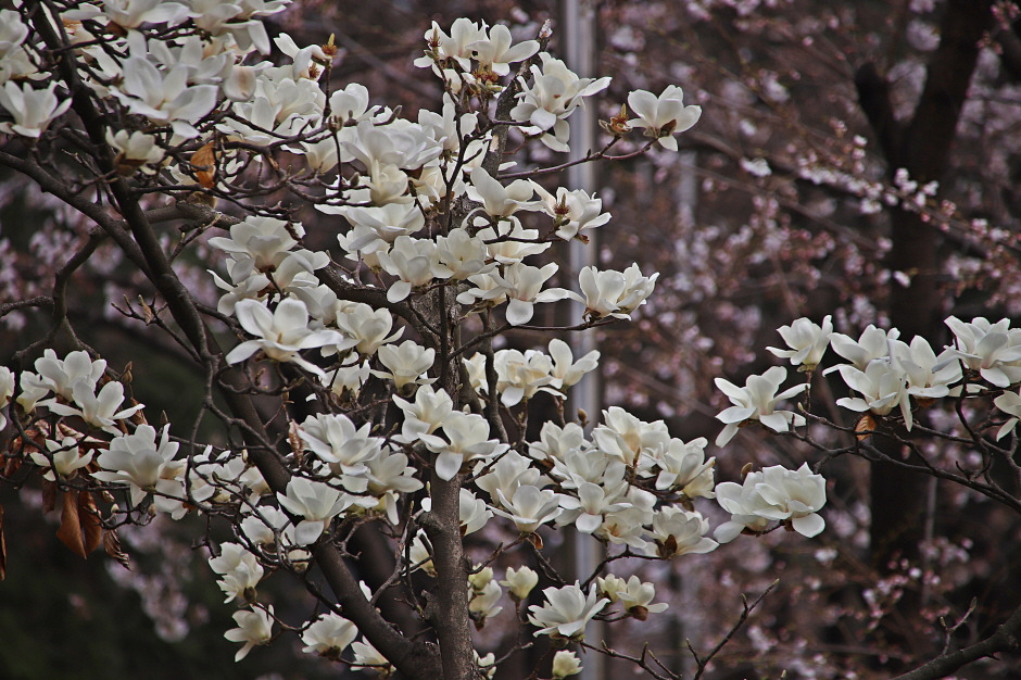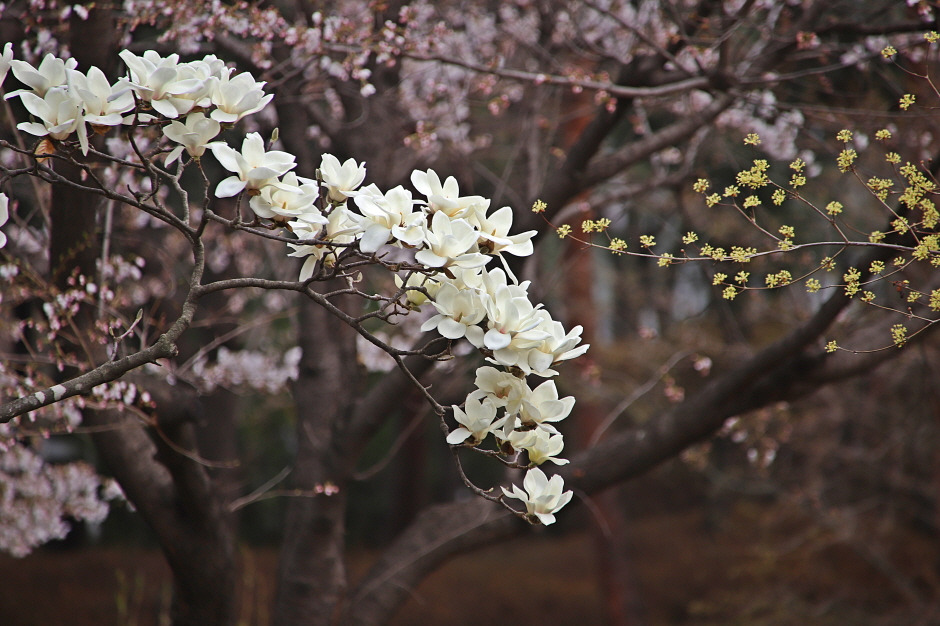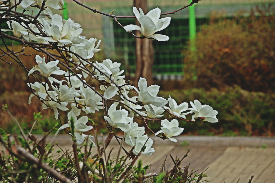 목련. 자목련. 유자. 벚꽃. 기념식수 등