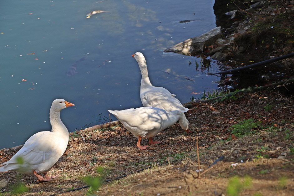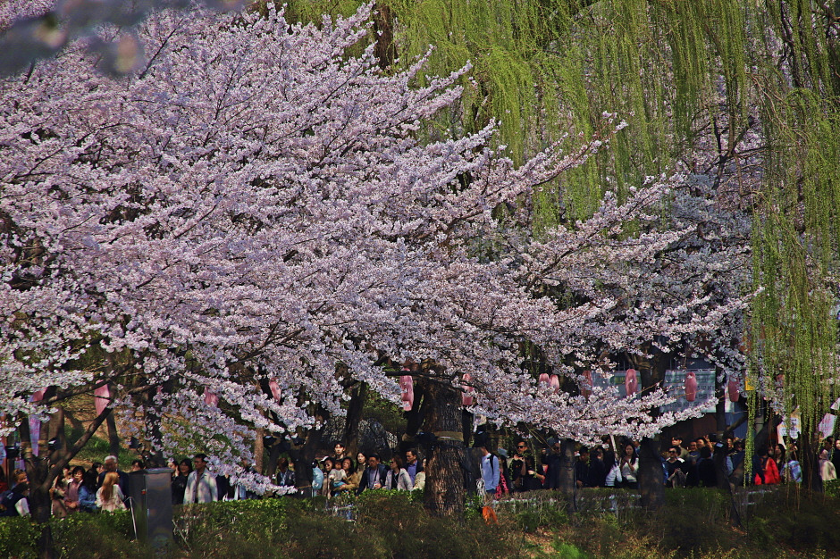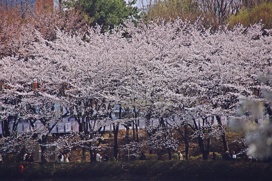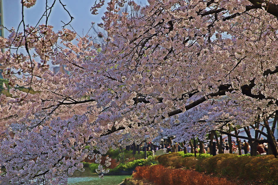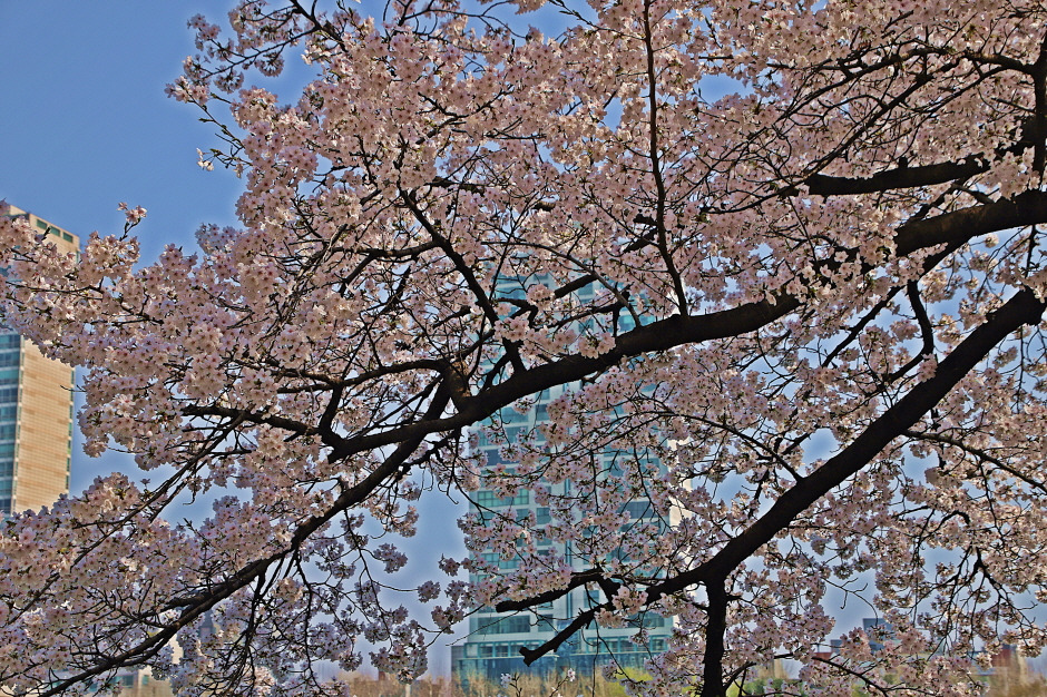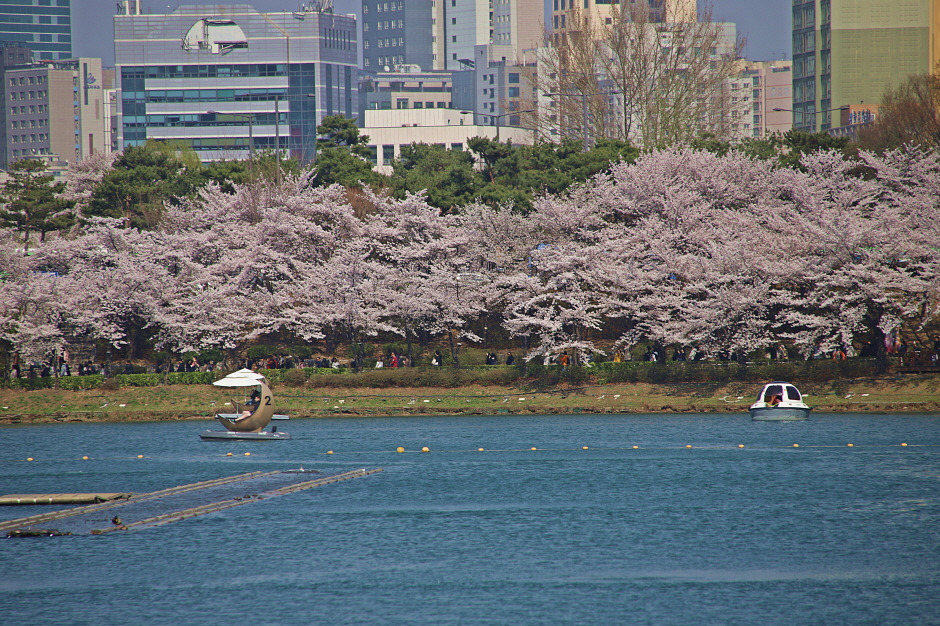 롯데월드와 다양한 벚꽃. 작은 배들의 질주와 거위.