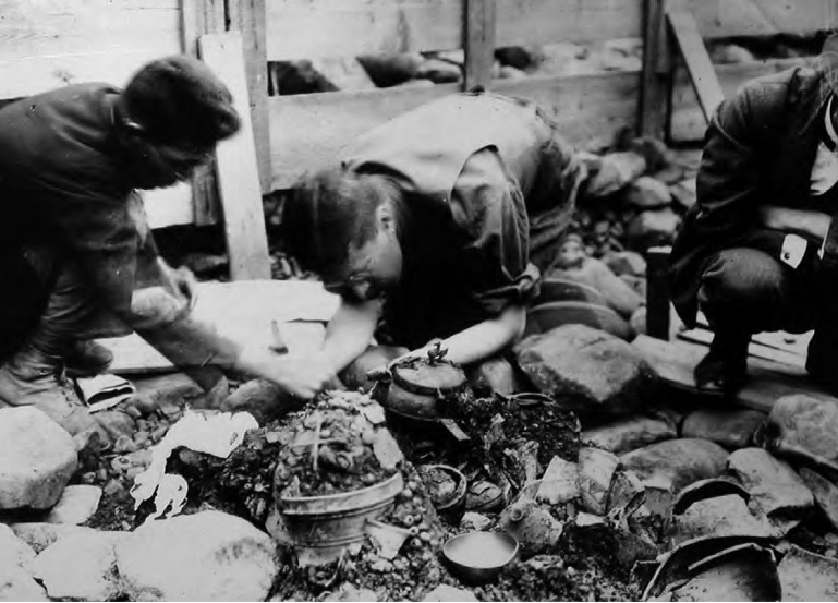 금관을 발굴중인 스웨덴의 구스타프 아돌프 황태자