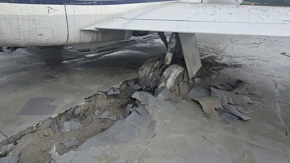 (4339편의 랜딩 기어는 9월 24일 비행기가 로어노크-블랙스버그 지역 공항의 활주로 끝을 이탈한 후 EMAS 비상 정지 시스템에 내장되어 있습니다. - 로어노크-블랙스버그 지역 공항)