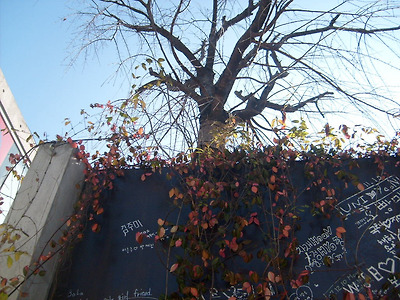 쌈지길 옥상에 있는 하늘공원의 나무와 낙서.