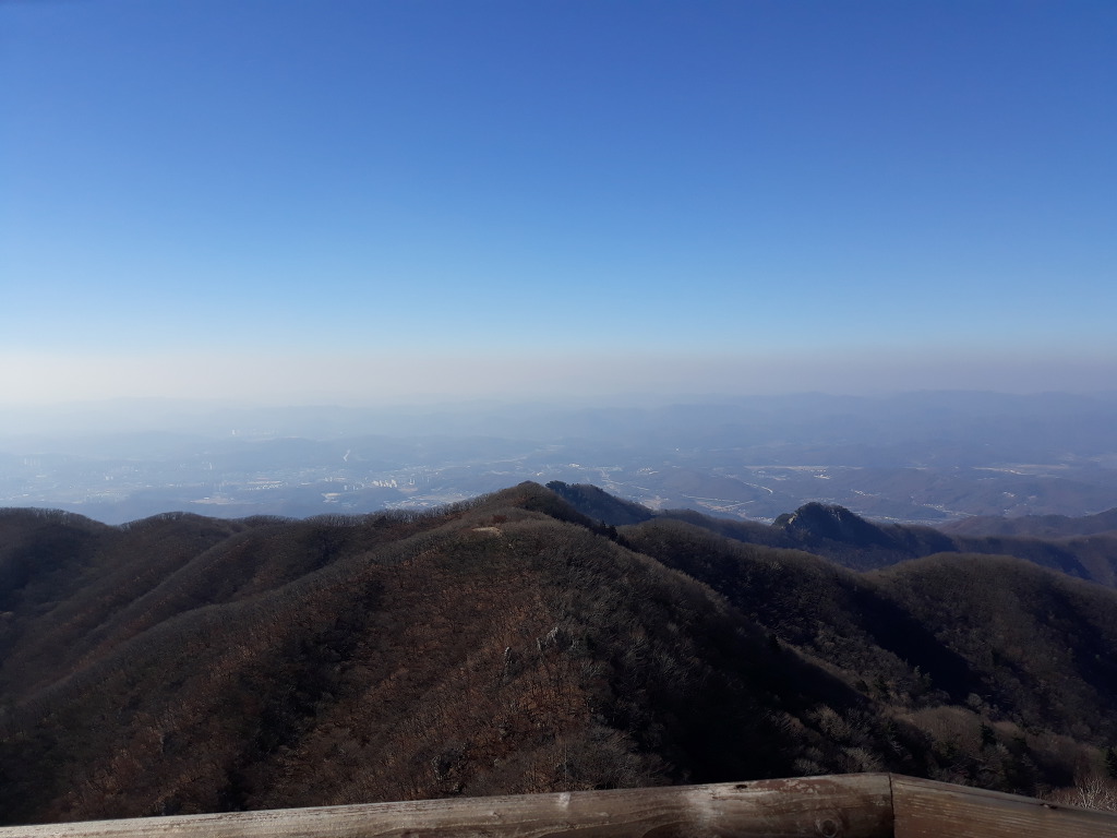 드디어 치악산 1,288미터 정상에 도착한 것 같다 특히 놀란 건 정상에 멋 있는 나무데크 전망대를 만들어 一望無際로 사방을 굽어볼 수있다는 사실인데 예전 네발로 기다시피 올랐던 정상 힘은 들어도 나무게단 돌게단으로 안전하게 오를 수 있도록 된 오늘을 보면서 이게 다 경제발전 덕인데 요새는 온 나라 경제가다시 생각 하기도 싫은 IMF시대로 되 돌아간다고 걱정들이니 마음이 편치않다