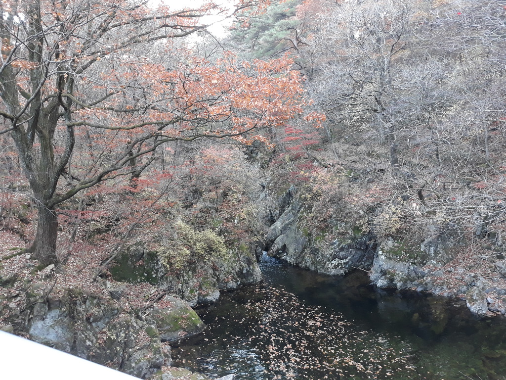 특히 매표소로부터구룡사 까지 오르는 길은 반 영구적인 세멘트 보드브럭으로 포장이 잘 되어 있어 큰 화물트럭이 오르내린다 또 사찰까지는 걔울을 따라 목책산책로를 설치 해 놓아 맑은 개울 물이며 무르 익은 가을단풍을 만끽 할 수있었다